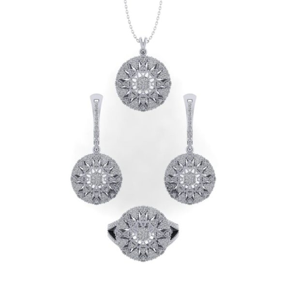 Işıltısı ve zarafeti bir araya getiren 1,74 Karat 3’lü Pırlanta Set, kolye, küpe ve yüzükten oluşan şık tasarımıyla özel günlerinize değer katar. Baget ve brilliant kesim pırlantaların mükemmel uyumu, seti göz alıcı bir bütün haline getirir.