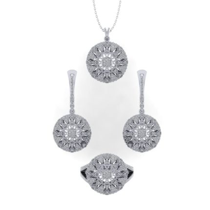 Işıltının en seçkin halini temsil eden 1,86 Karat 3’lü Pırlanta Set, büyüleyici zarafetiyle her ortamda fark yaratır. Yüzük, kolye ve küpeden oluşan bu özel set; 1,86 karat pırlantaların etkileyici ışıltısıyla lüksü ve zarafeti mükemmel bir uyum içinde sunar. Özel günlerde ya da günlük şıklıkta, her anınıza prestij katmak için tasarlandı.